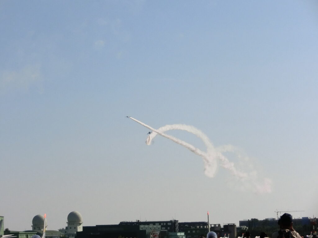この日もいつものようにブリーフィングを終え、約40分の展示飛行を快晴の空の下で無事に終えることができました。