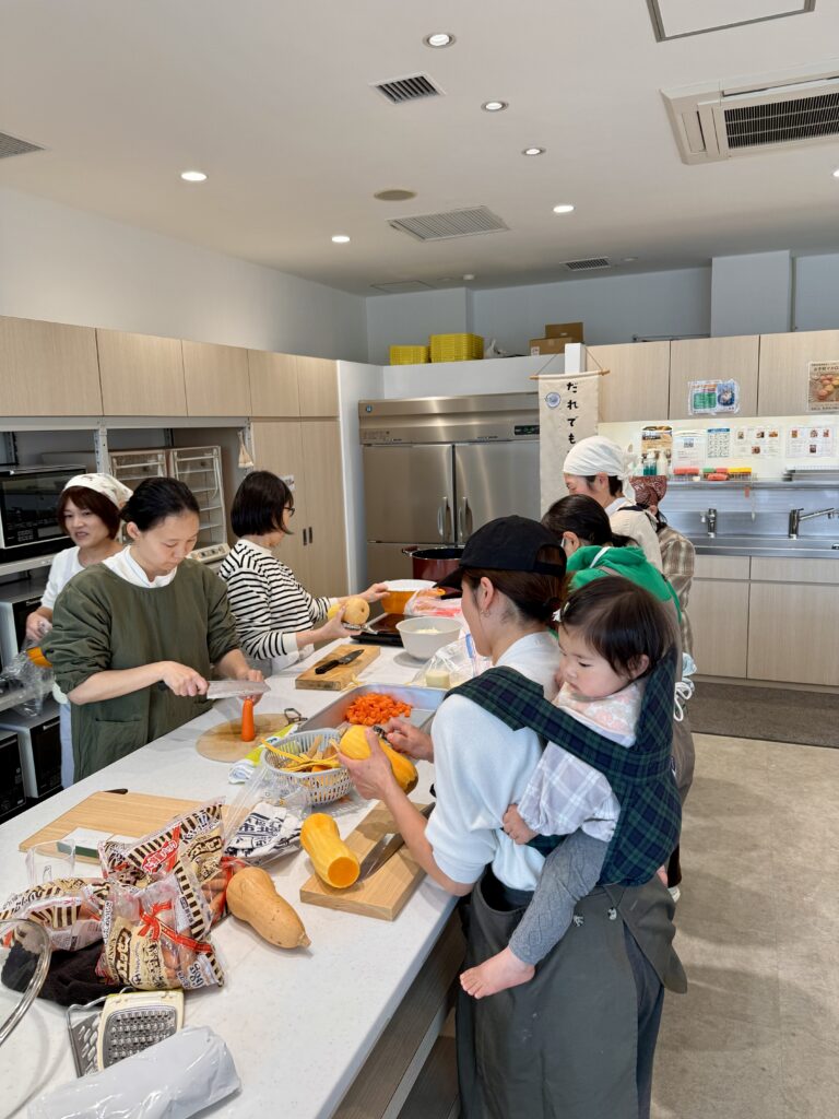 子どもをおんぶしながらお手伝いする方も。みなさん素晴らしいですね。