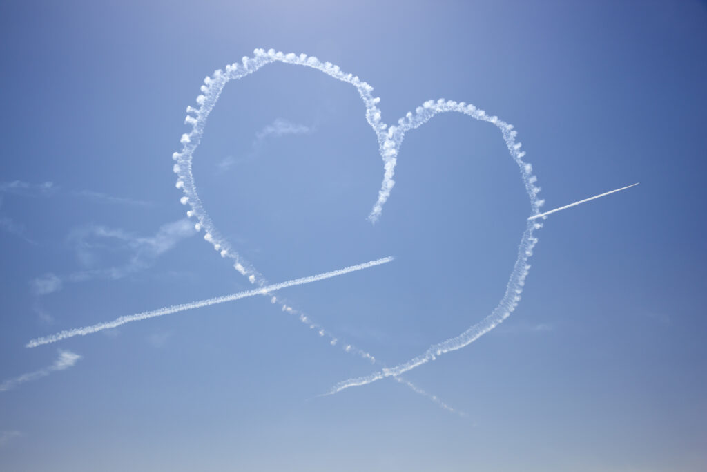 6機がピタリと揃って編隊を組み、青空をキャンバスにして描くハートや星。